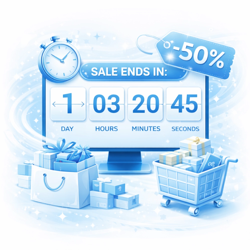 Countdown timers highlight limited-time offers and promotions, encouraging customers to complete purchases before deals expire. This improves engagement, reduces hesitation, and drives faster decision-making.